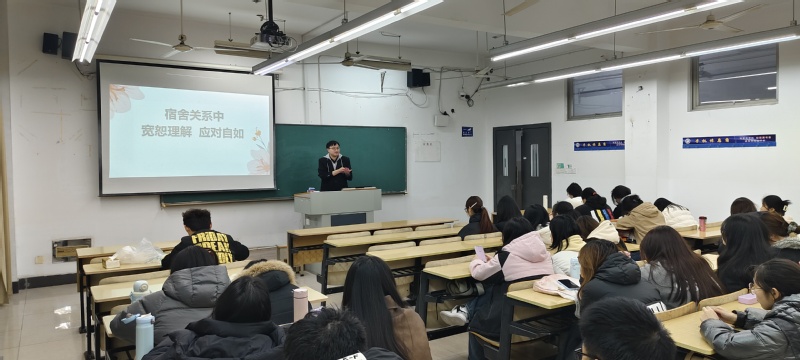 活动伊始,夏老师以“如何在新集体中建立良好人际关系”为切入点,借助案例和互动问答,引导同学们深入思考宿舍生活中常见的问题,如作息差异、卫生习惯不同等。同时,夏老师着重强调在与舍友相处时,要明确自身的行为边界,学会主动沟通,用宽恕的心态去化解矛盾。