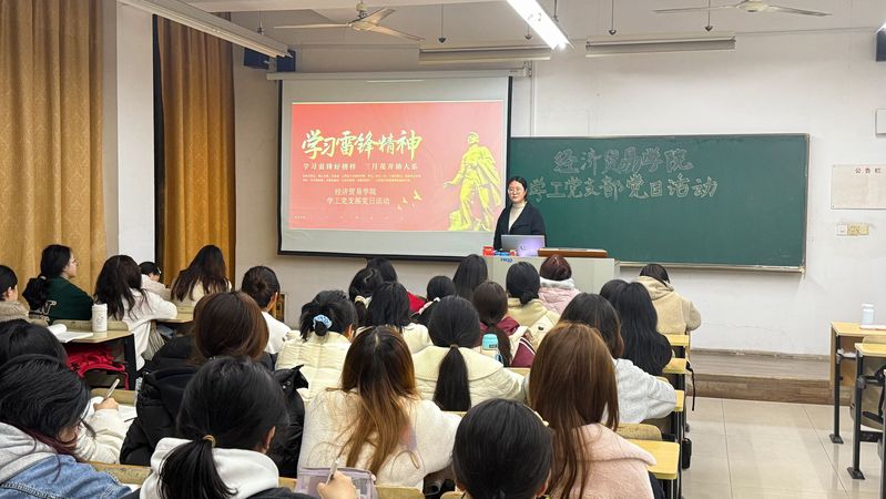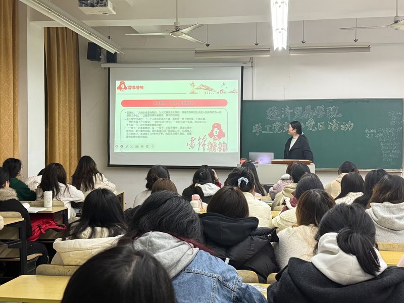 新时代“扁担精神”先锋队队员宋慧慧站在讲台上,眼中闪烁着炽热的光芒:“雷锋叔叔说人的生命是有限的,可是为人民服务是无限的。而我们专业守护的,不仅是同学们的‘钱袋子’,更是整个社会的‘安全感’。”